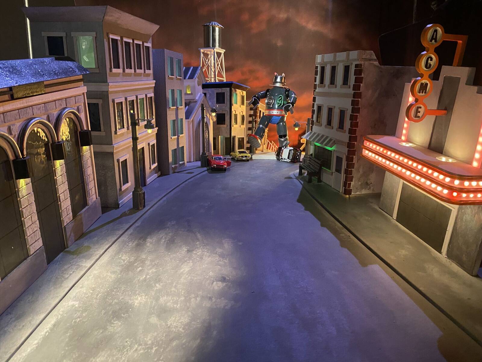 Acme Studios holiday card paying homage to 1950s and 60s sci-fi B-movies. Practical miniatures, stereoscopic photography, and 3D glasses included in every mailer.