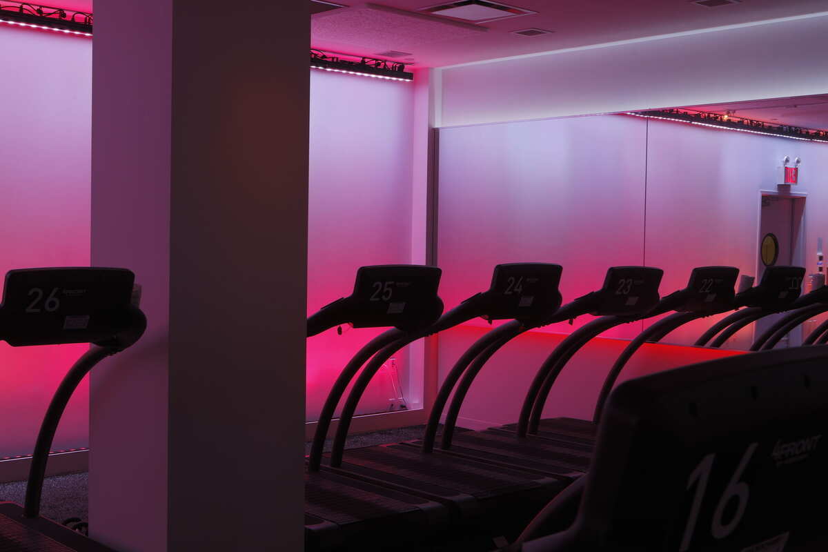 Lighting design for New York City's first boutique running gym — a Turrell-inspired 360° environment where slow-fading color gradients follow the arc of each class.